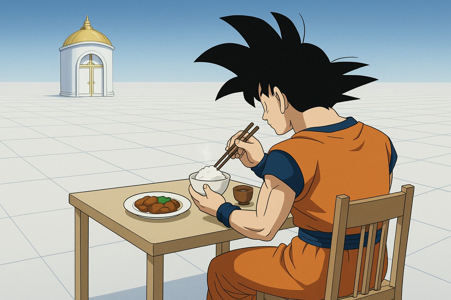 ドラゴンボールの名場面といえば、悟空や悟飯、ベジータが修行に身を置いた「精神と時の部屋」。外界の1日=部屋の中の1年という狂気的な設定で、修行効率の化け物みたいな空間だ。しかし、いつも疑問に思うことがある。彼らはあそこで、どこで そしてどうやって食事をしているのか?