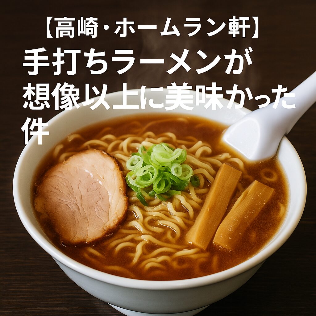 高崎で手打ちラーメンを探してる人には、ホームラン軒は本気でおすすめできる店。ラーメン好きなら一度は食べてほしいし、一人でも入りやすい雰囲気だからソロ飯にも最適だ。次はチャーシューメンか、味噌系にも挑戦したいと思っている。