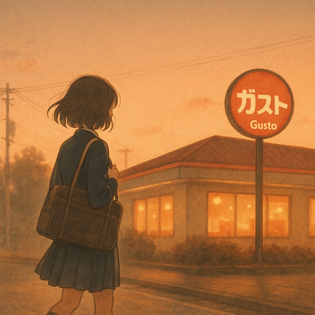 渋川女子高の帰り道、冬の夕方だった。駅に向かう坂の途中、ふと視界に入ったガストの明かりが、やけに暖かく見えた時がある。校門を出た瞬間の冷たい風、白い息、友達の笑い声。みんなでコンビニに寄ってプリン買って帰る日もあったけど、その日はなぜか、私だけ心の奥が少し寂しかった。