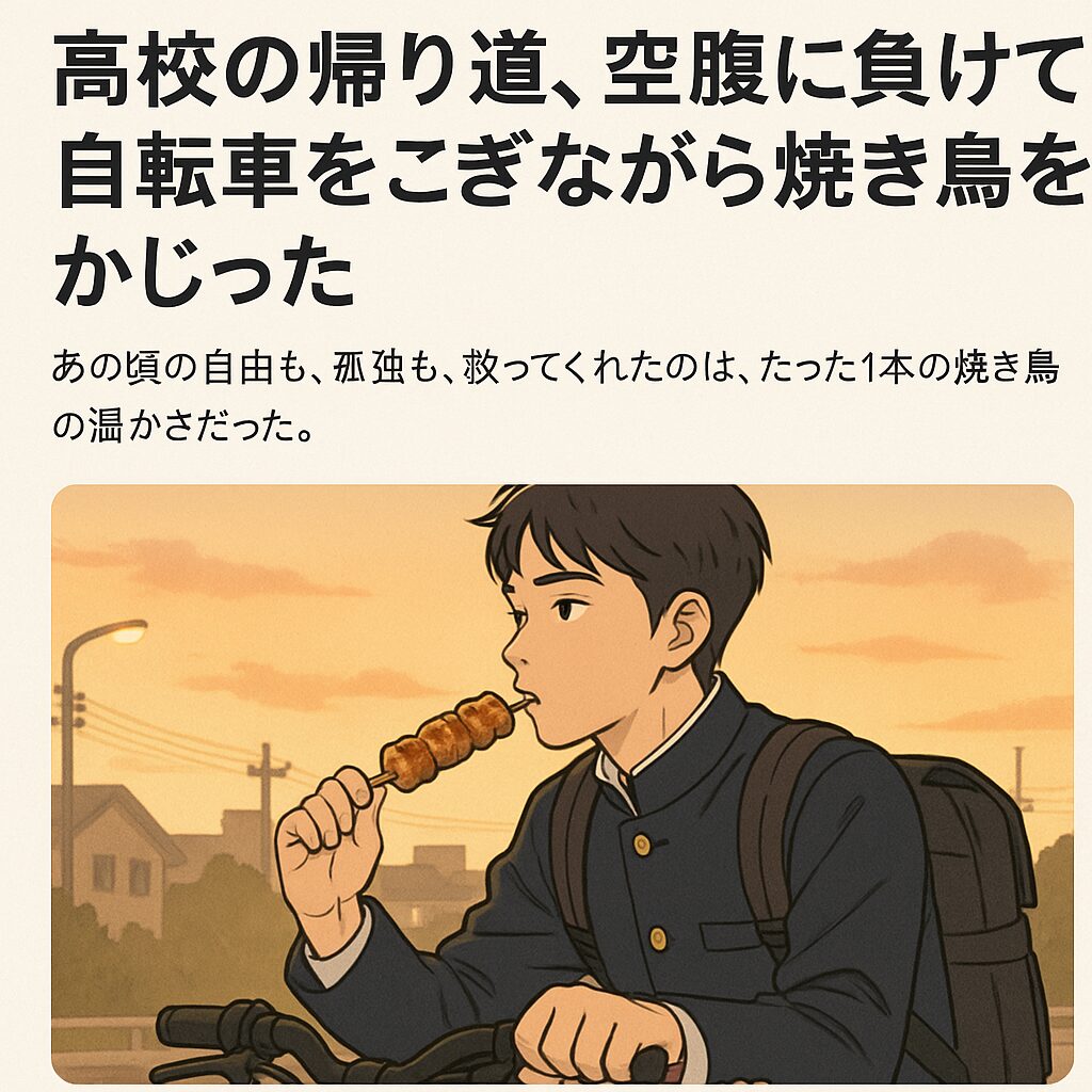 高校の帰り道、空腹に負けて自転車をこぎながら焼き鳥をかじった話
