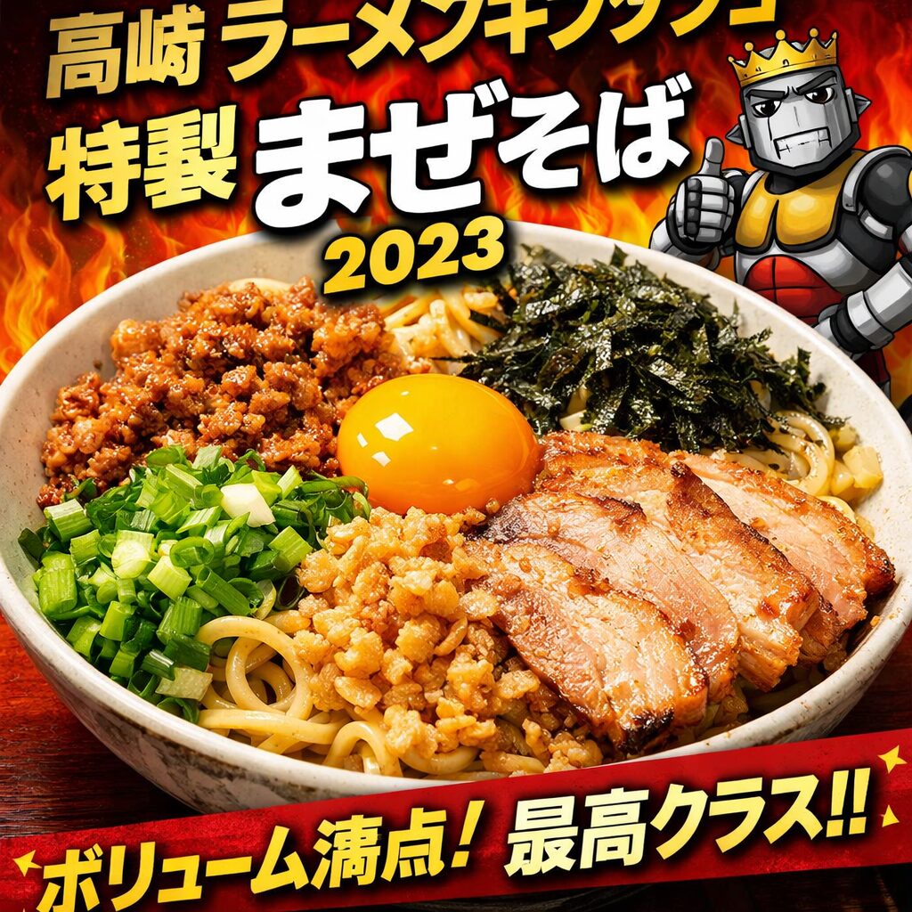 2023年、高崎で昼時を少し外した時間帯。それでも店の前には人の気配があり、「やっぱり人気なんだな」と思いながらラーメンキングジョーに入った。この日は最初から決めていた。まぜそばを、しっかり食べる日だ。