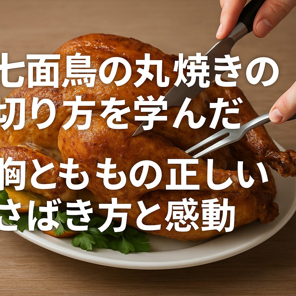 まず大切なのは、ナイフよりも「まな板の位置」と「固定」。大きい肉は動くと危険なので、フォークかトングでしっかり押さえ、包丁を大きく動かすのではなく、肉に沿って滑らせるように切ると良い。最初に外すのは足の付け根。関節に沿って刃を入れるとスッと切れる。思っていた以上に簡単で、小さな達成感があった。