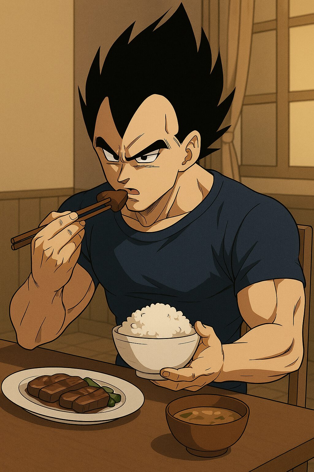 ドラゴンボールで食に関して最も豪快なキャラと言えば悟空だろう。大皿を山のように積み上げ、茶碗を片手に豪快に肉を頬張る。一方、同じサイヤ人でありながらベジータの食事シーンは少し種類が違う。彼は「大食い」ではあるものの、どこか孤独で、ひとり飯の空気をまとっているのだ。